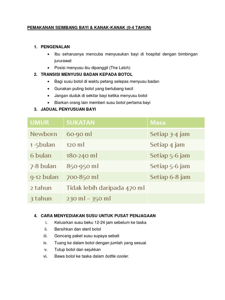 Kuantiti Susu Mengikut Umur Bayi / Pilih susu tanpa gula dan.